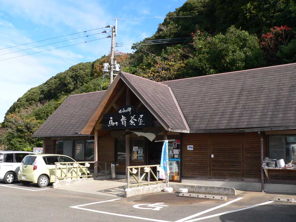 バスは、クルスの海 展望台から少し進み、日向岬 馬の背茶屋のある駐車場に到着です。
